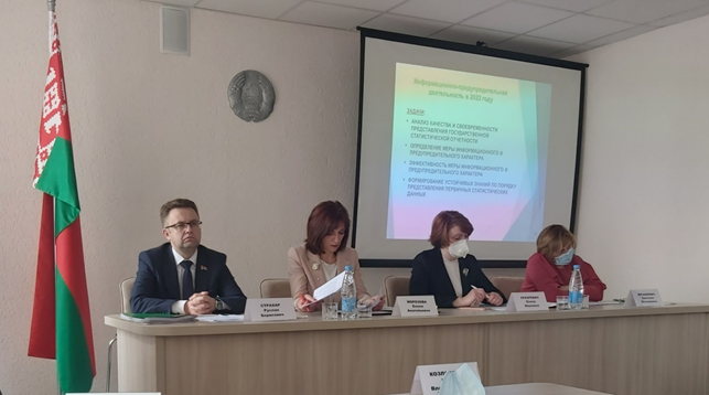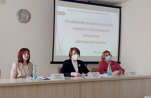 2 марта 2022 года состоялось расширенное заседание коллегии Главного статистического управления Могилевской области. В работе заседания приняли участие Первый заместитель Председателя Национального статистического комитета Республики Беларусь Кухаревич Елена Ивановна, заместитель председателя Могилевского областного исполнительного комитета Страхар Руслан Борисович.