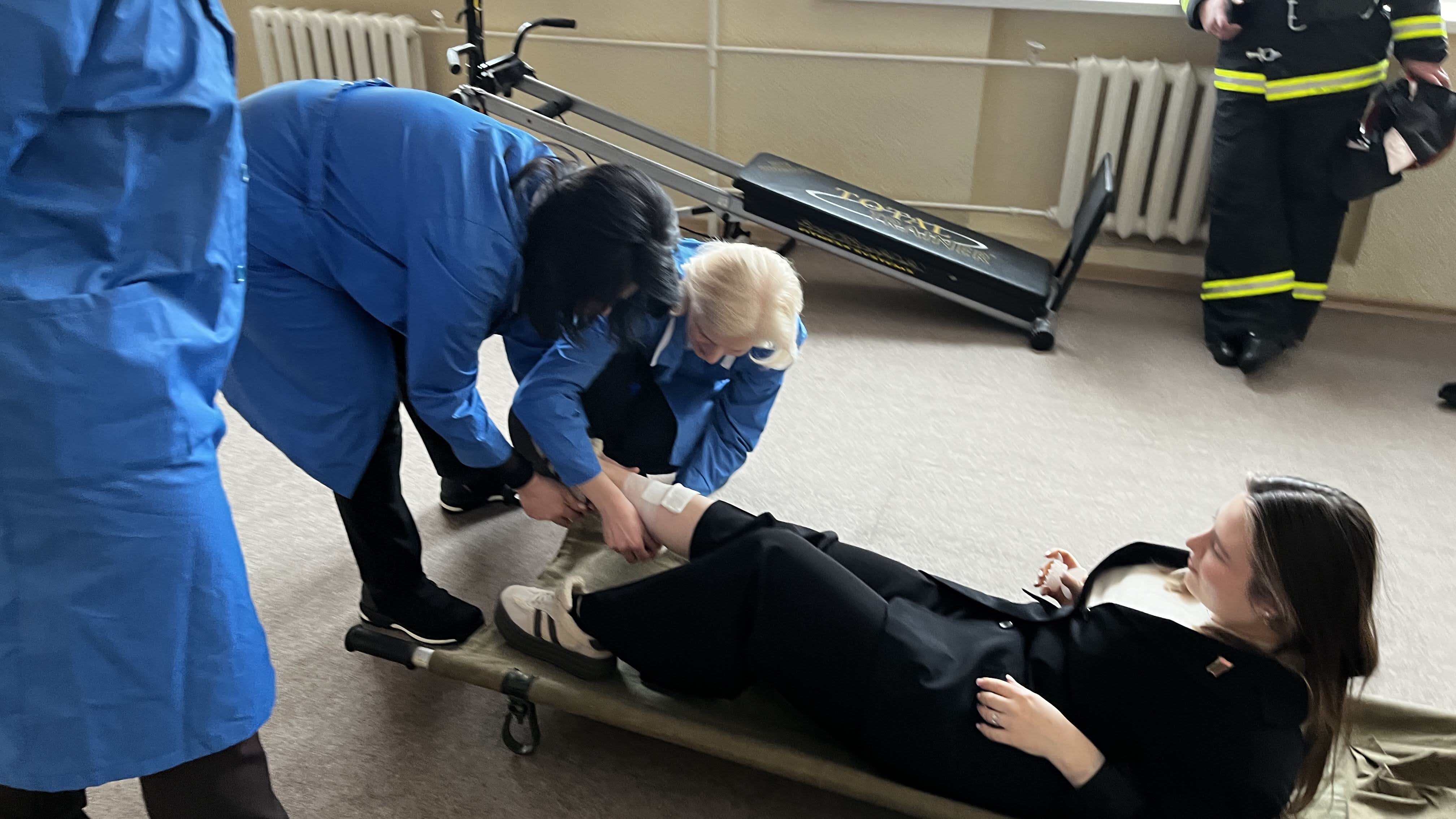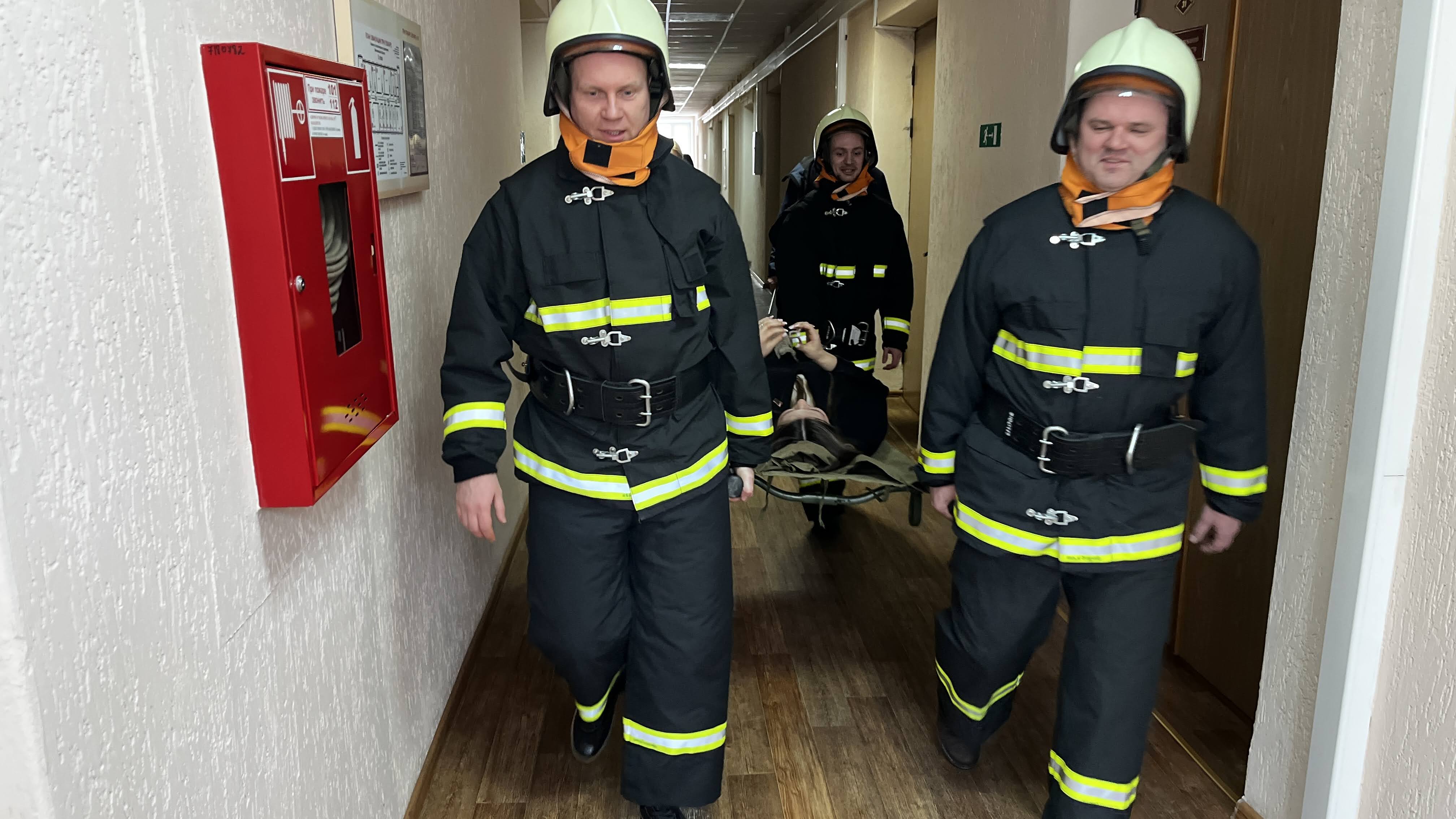 В ходе тренировки были отработаны практические навыки экстренной эвакуации персонала из здания, проведения спасательных работ, локализации и тушения пожара членами пожарной дружины, оказания первой помощи пострадавшему санитарным звеном.