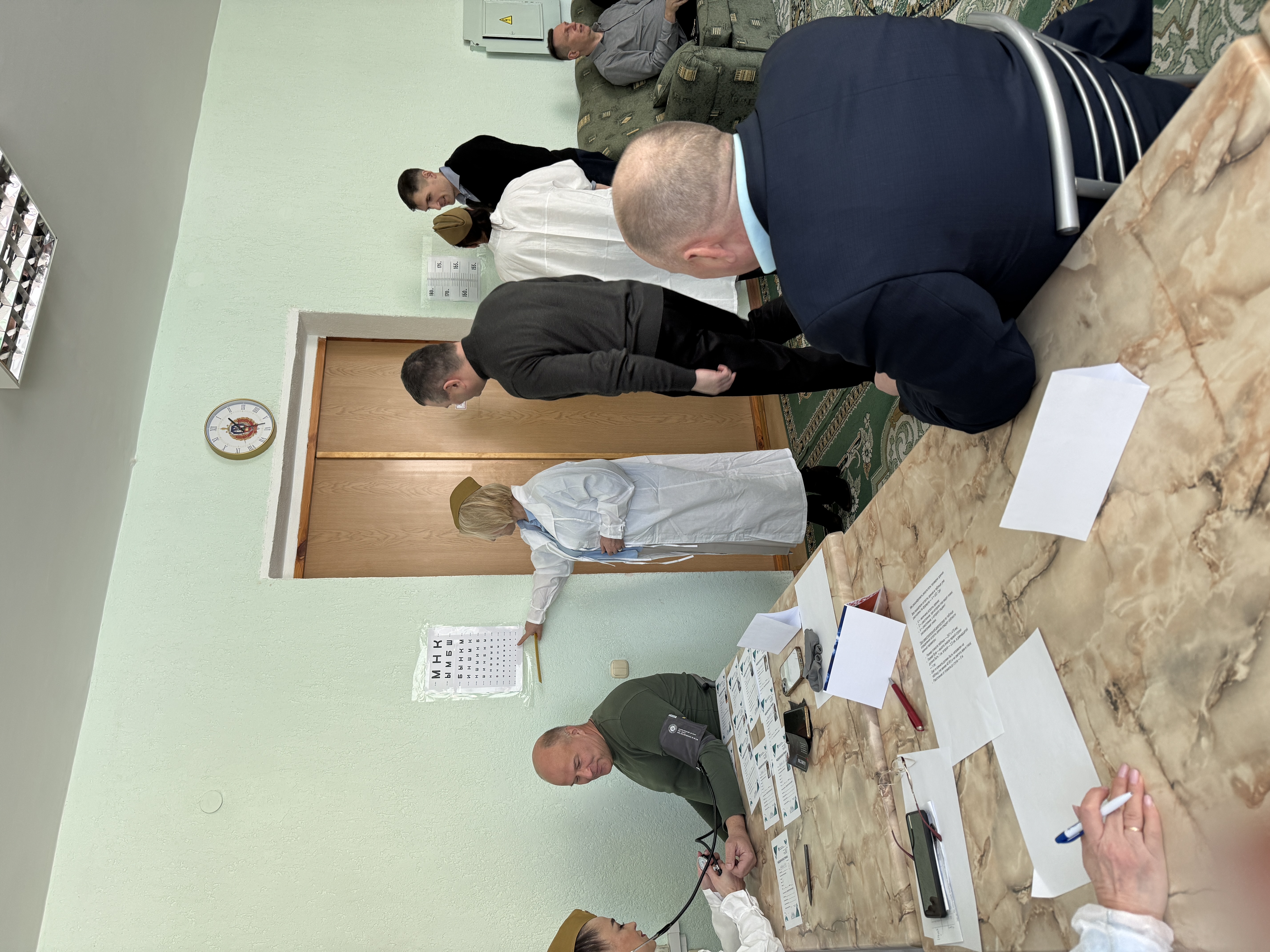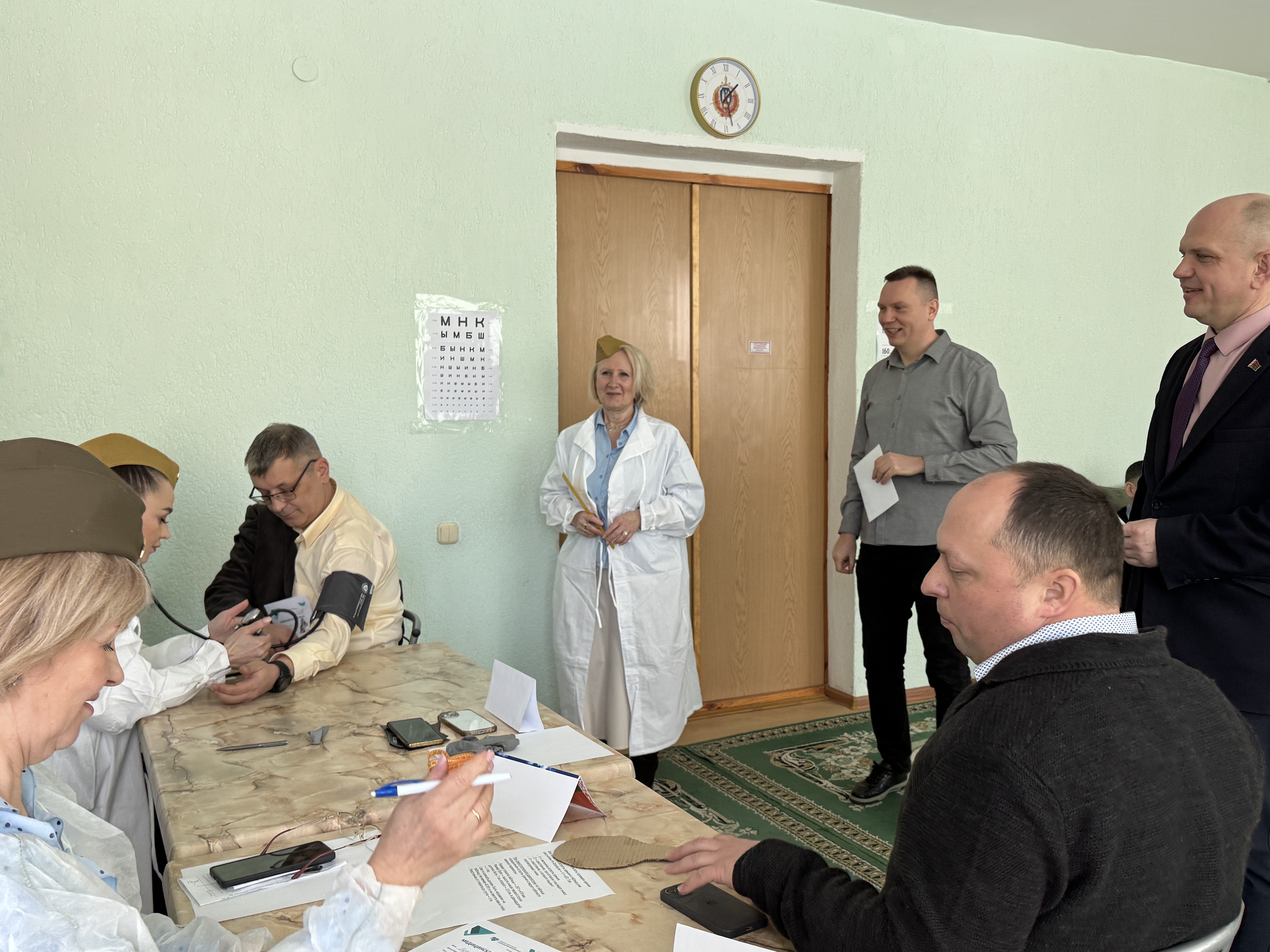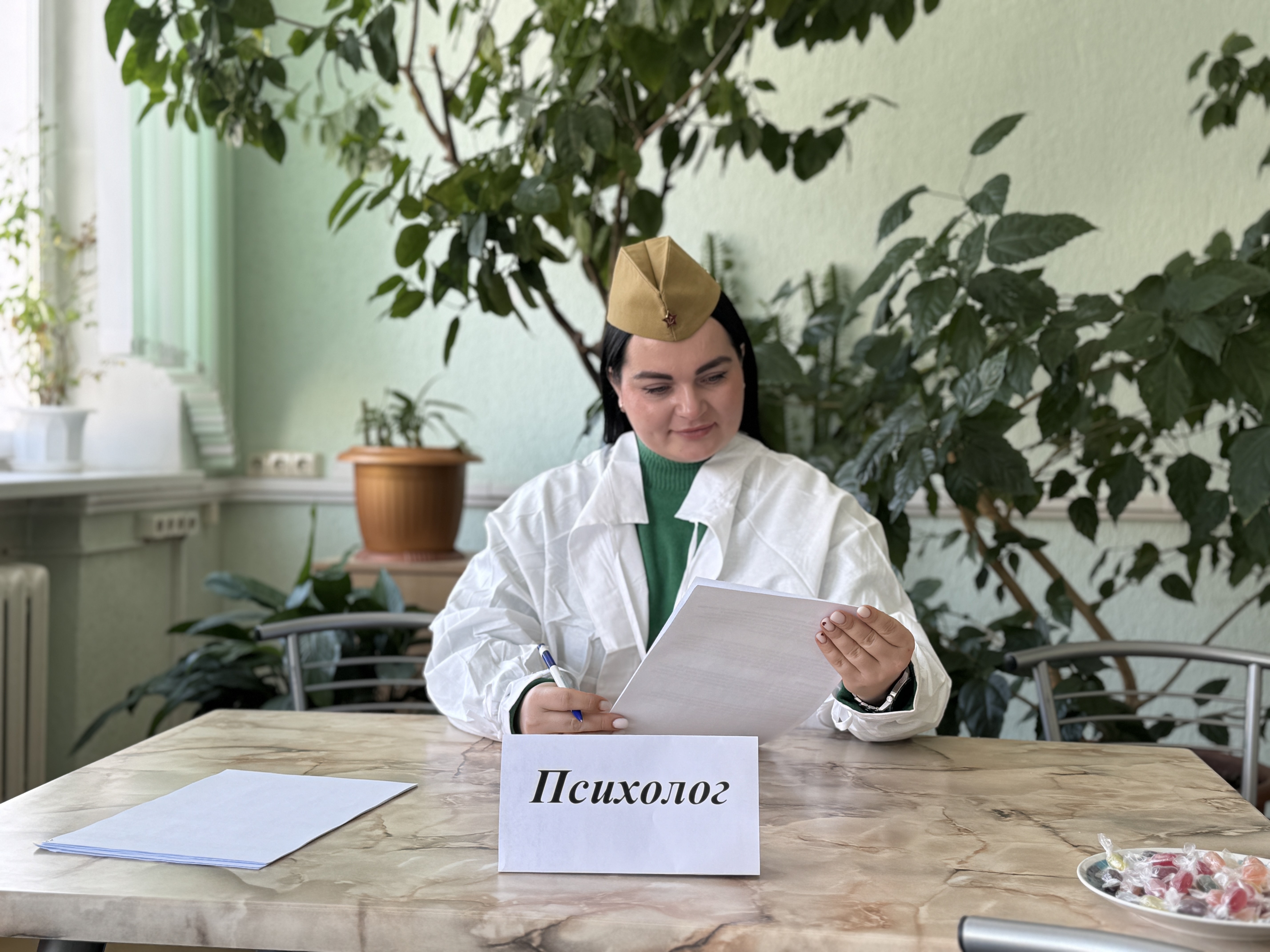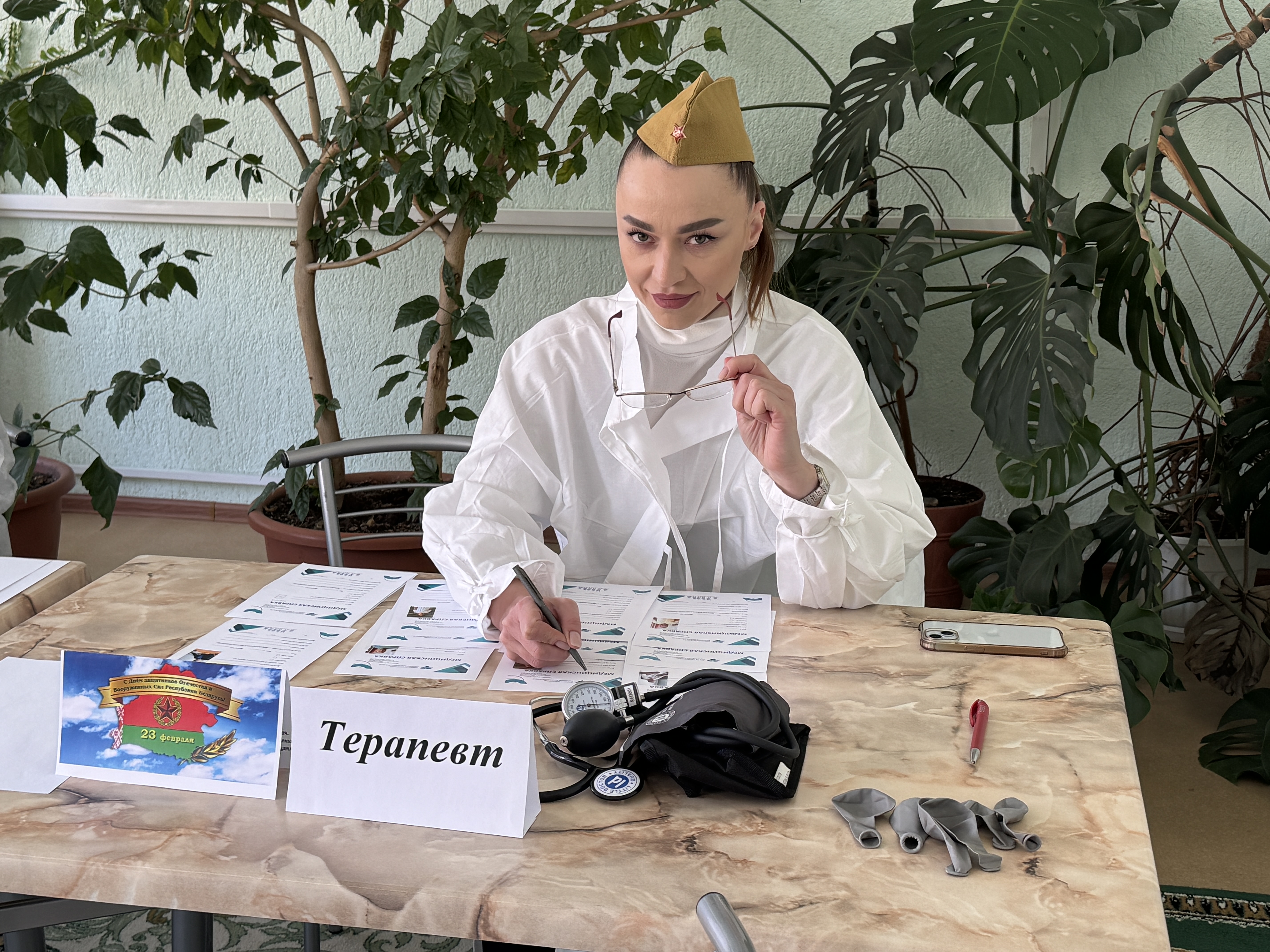 В этот особенный день была выражена искренняя благодарность сильной половине коллектива за смелость, силу и самоотверженность. В качестве проявления заботы о своих мужчинах, профкомом было организовано костюмированное поздравление, которое стало замечательным сюрпризом для мужчин. С самого утра сильная половина управления получила повестки на прохождение медицинского осмотра годности для работы в женском коллективе. Медкомиссия состояла из прохождения терапевта, окулиста, психолога и допуска к работе – главного врача.