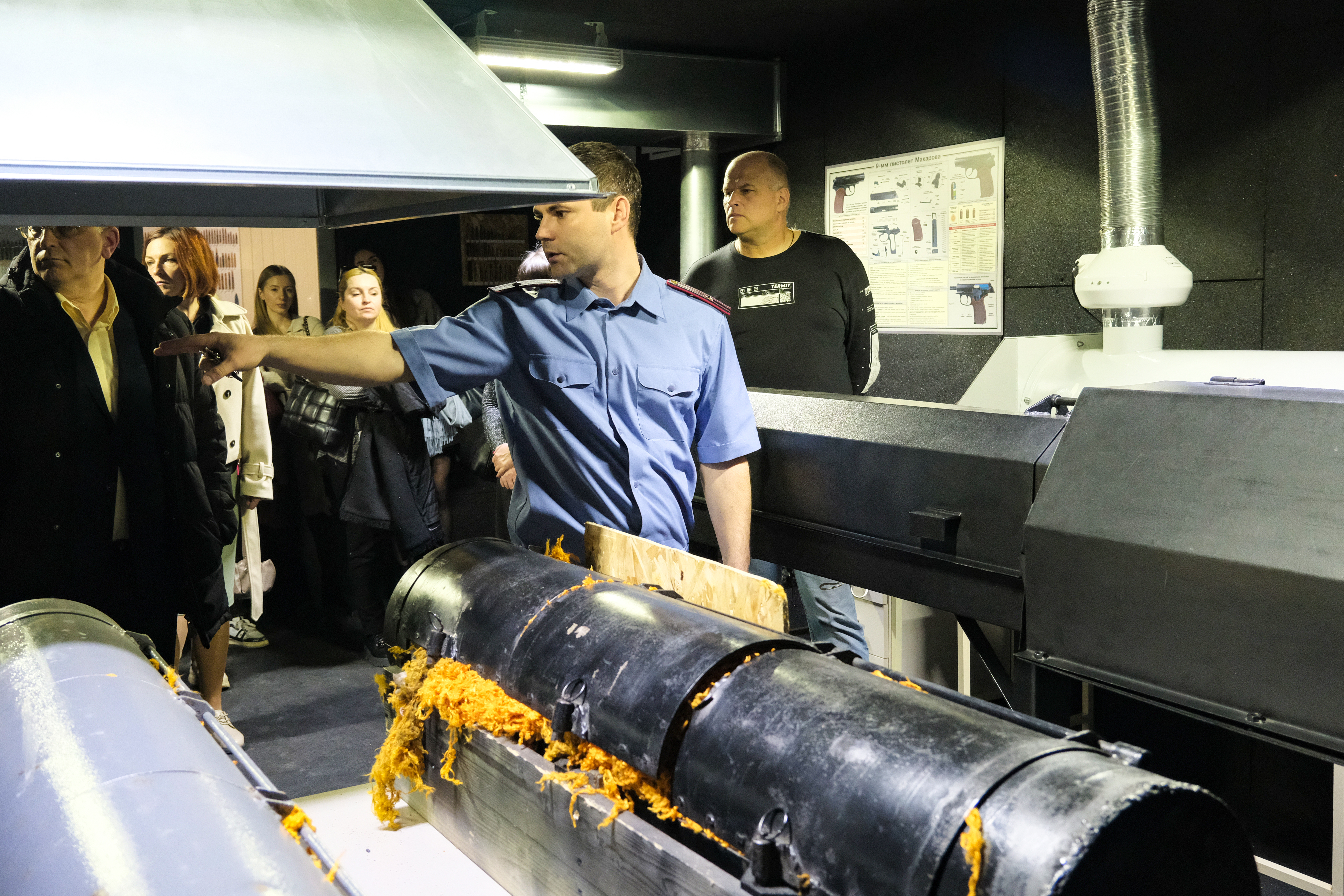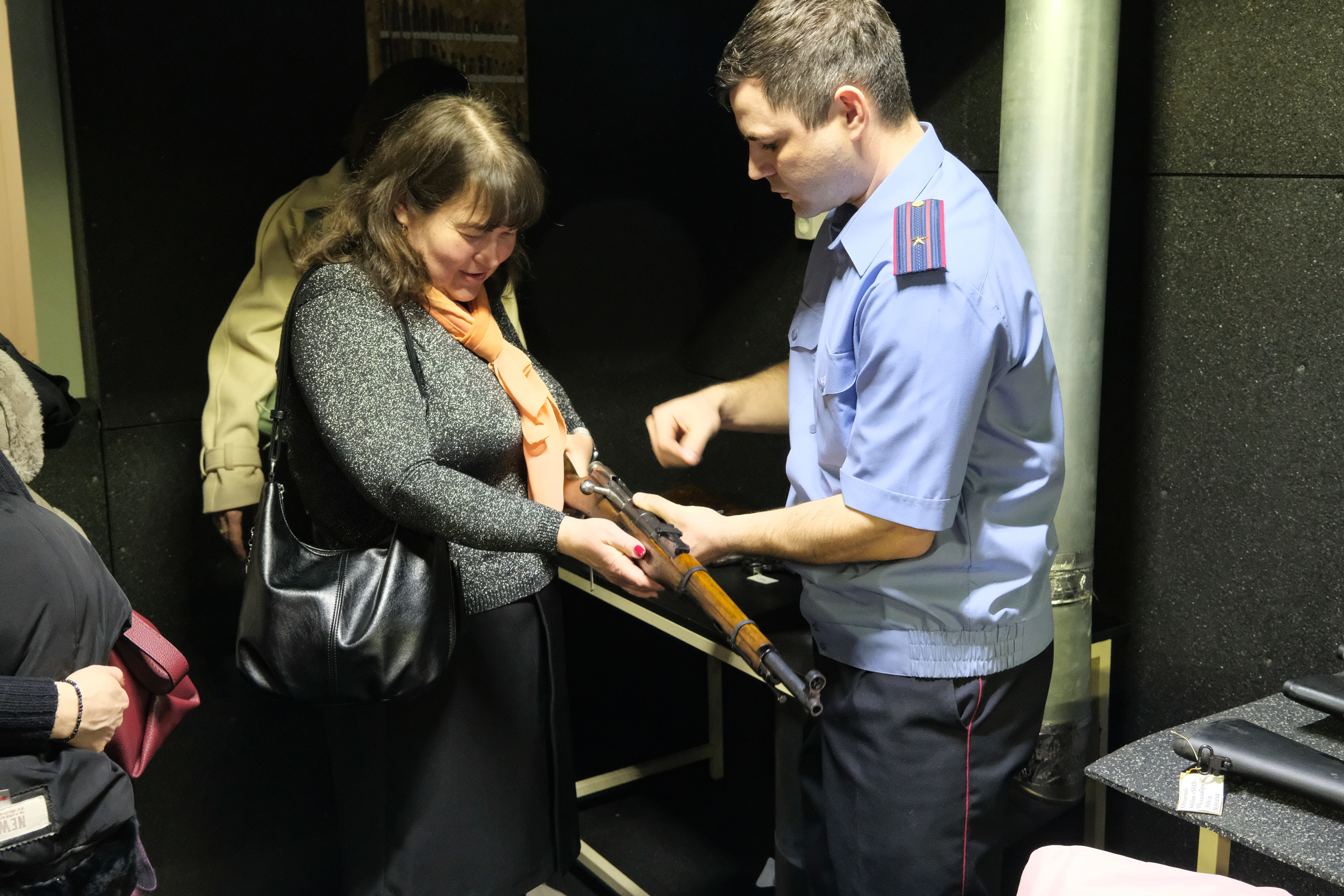 Также работникам представилась возможность посетить тир и узнать больше о баллистической экспертизе, ознакомиться с коллекцией стрелкового оружия Государственного комитета судебных экспертиз, посетить кабинеты и лаборатории, в которых эксперты исследуют причины возникновения пожаров, отпечатки пальцев, подчерков.