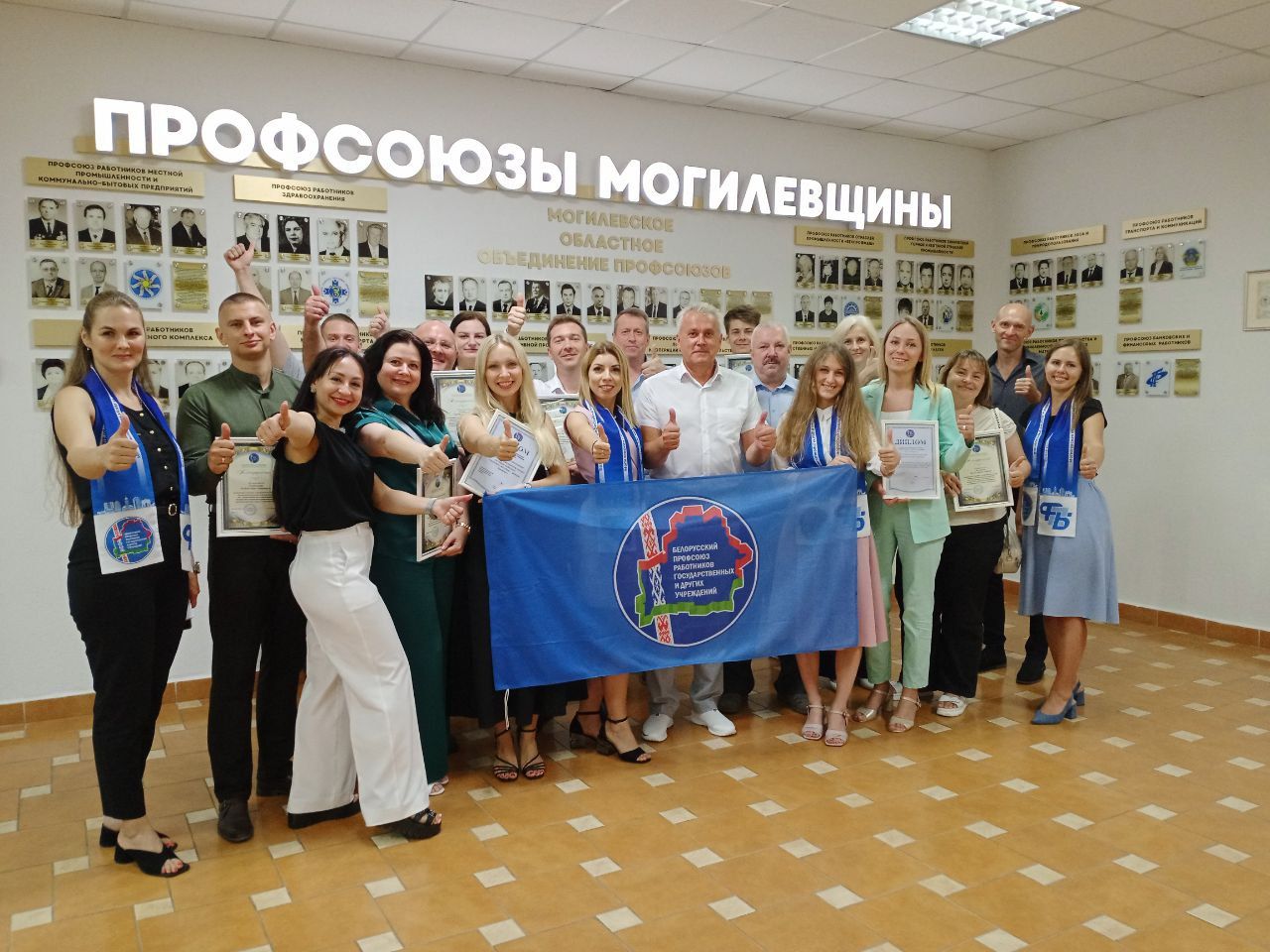 Благодарности областной организации Профсоюза работников госучреждений Могилевской области вручены участникам спортивной сборной команды, занявшей 1 место в V Республиканской спартакиаде. Среди них работники Главного управления: главный специалист управления Соловьев Александр, главный специалист отдела статистики цен Науменко Юлия, ведущий бухгалтер отдела финансов Руцкая Жанна, начальник отдела статистики Чаусского района Верховодкина Надежда.