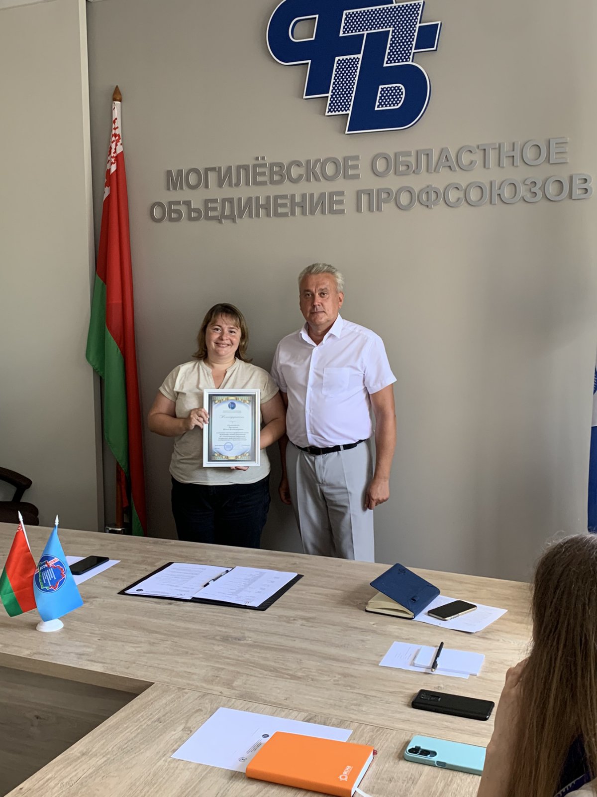 11 июля 2024 года в областном объединении профсоюзов Могилевской области состоялось заседание обновленного Молодежного Совета областного Профсоюза работников госучреждений «Под знаком качества», в состав которого вошел администратор сетей отдела информационных технологий Главного управления Калистратов Илья. На Совет были приглашены члены профсоюза, активисты ПО ОО «БРСМ» Главного управления – главный специалист отдела статистики инвестиций и строительства Ященко Екатерина, главный специалист отдела статистики промышленности, науки и инноваций Хо Алина. Мероприятие прошло с участием Григория Воронина, председателя Могилевской областной организации Профсоюза работников госучреждений, советника областного объединения профсоюзов Виктора Лавриновича.