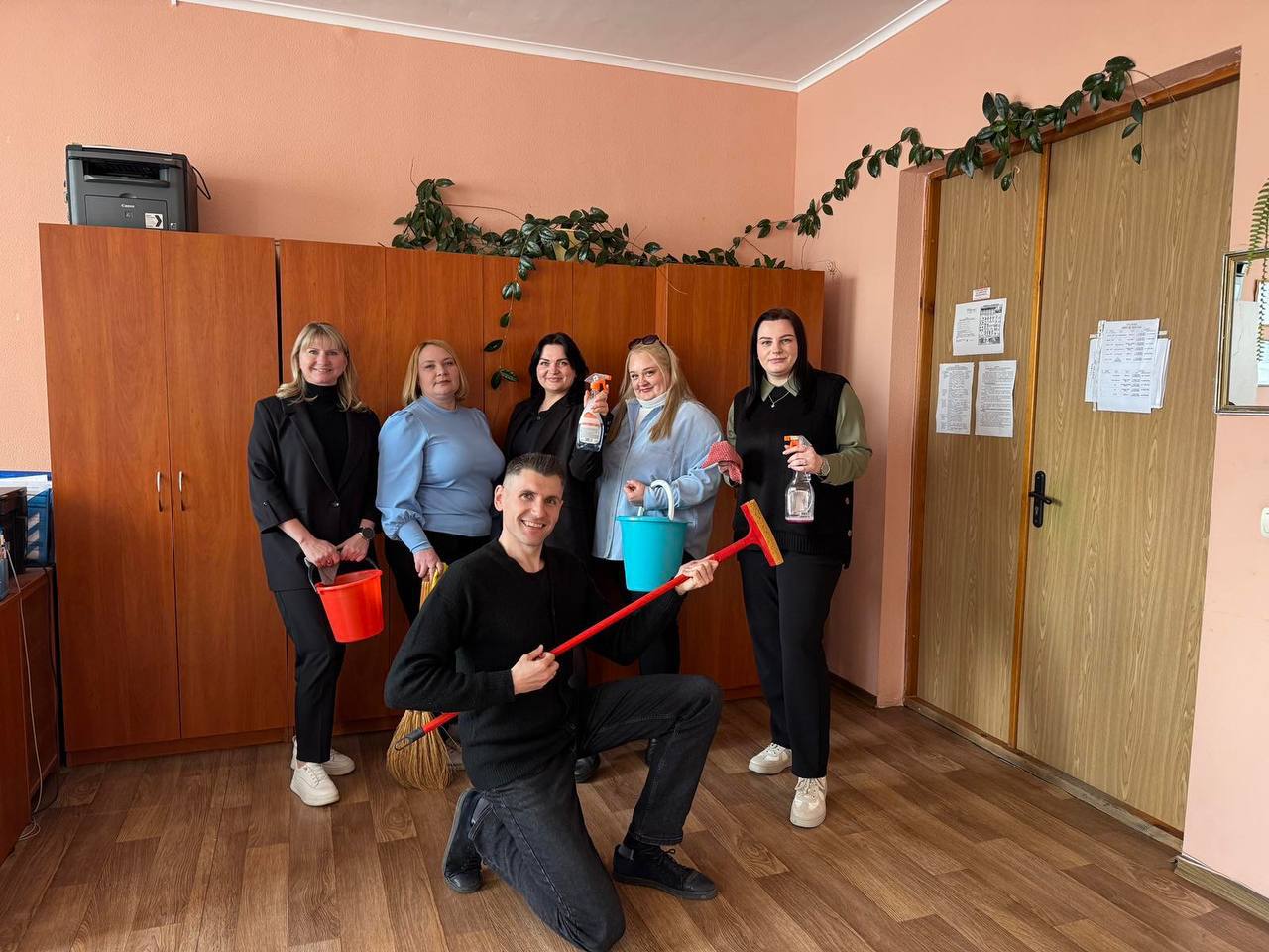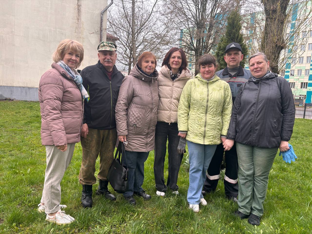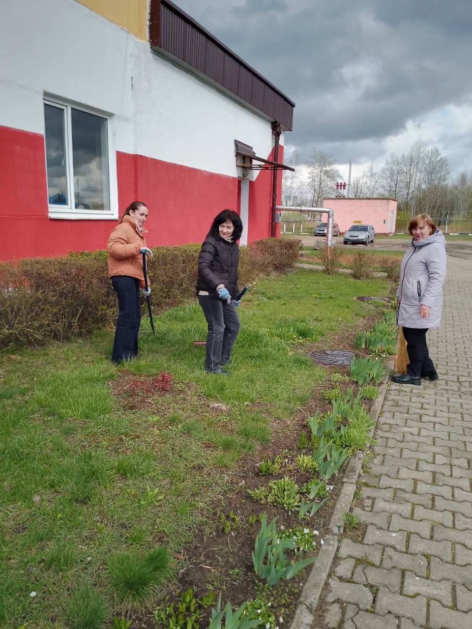Работники Главного управления разделили обязанности: одни занимались благоустройством прилегающей территории и уборкой мусора, другие — мытьем окон и дверей в производственных помещениях.