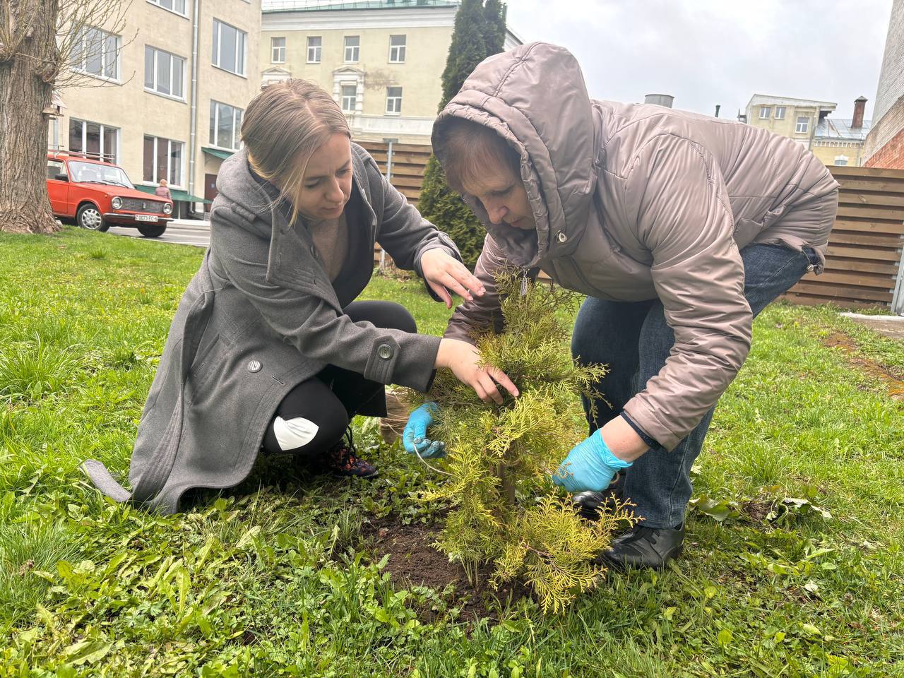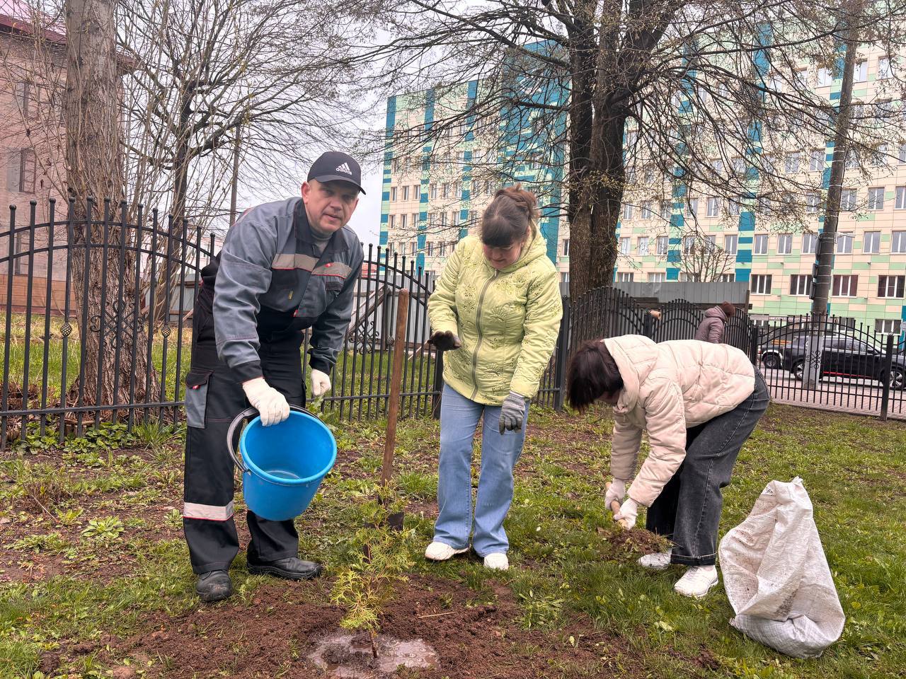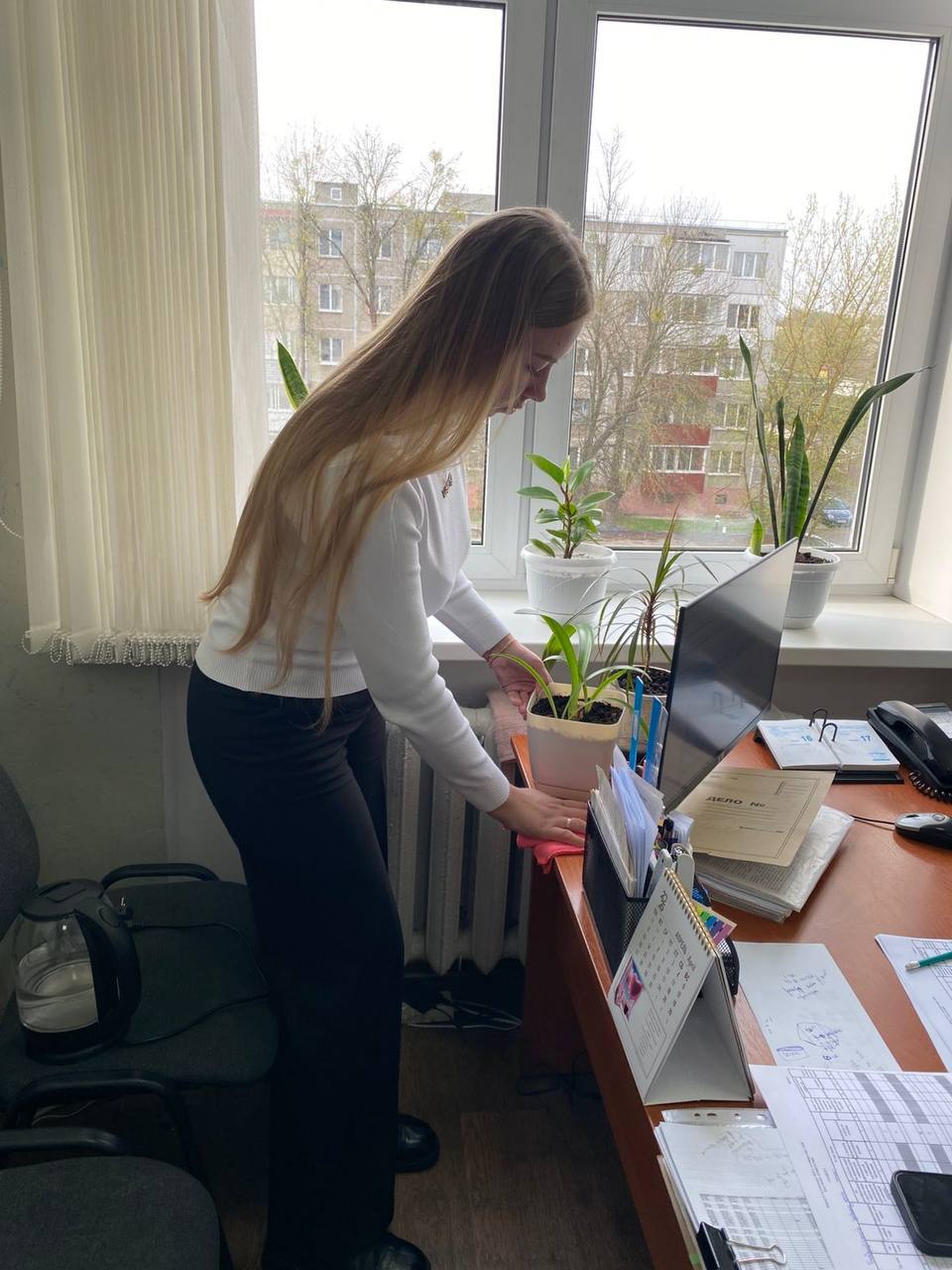 Работники Главного управления разделили обязанности: одни занимались благоустройством прилегающей территории и уборкой мусора, другие — мытьем окон и дверей в производственных помещениях.