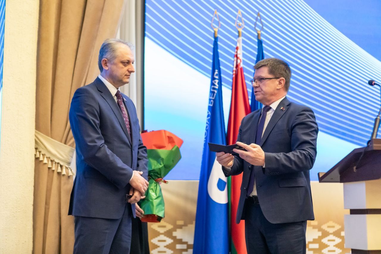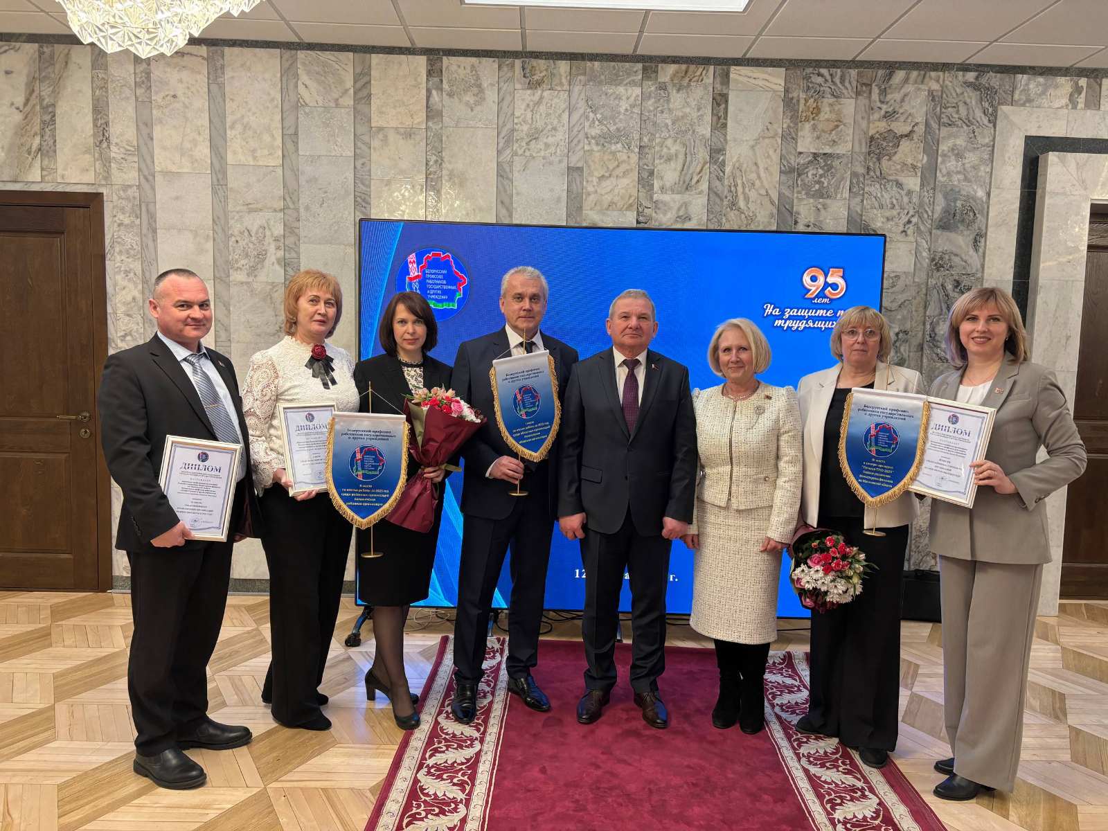 В рамках мероприятия в торжественной обстановке председатель Белорусского профсоюза работников госучреждений Сергей Потапенко по итогам работы за 2025 год вручил Могилевской областной организации отраслевого Профсоюза Вымпел и Диплом за 1 место среди областных организаций отраслевого Профсоюза.